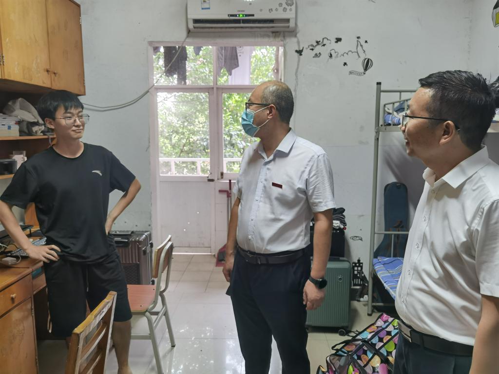 9月5日下午,计通学院党委书记刘宏伟、党委副书记涂道勇率学院全体辅导员老师下寝看望返校学生。