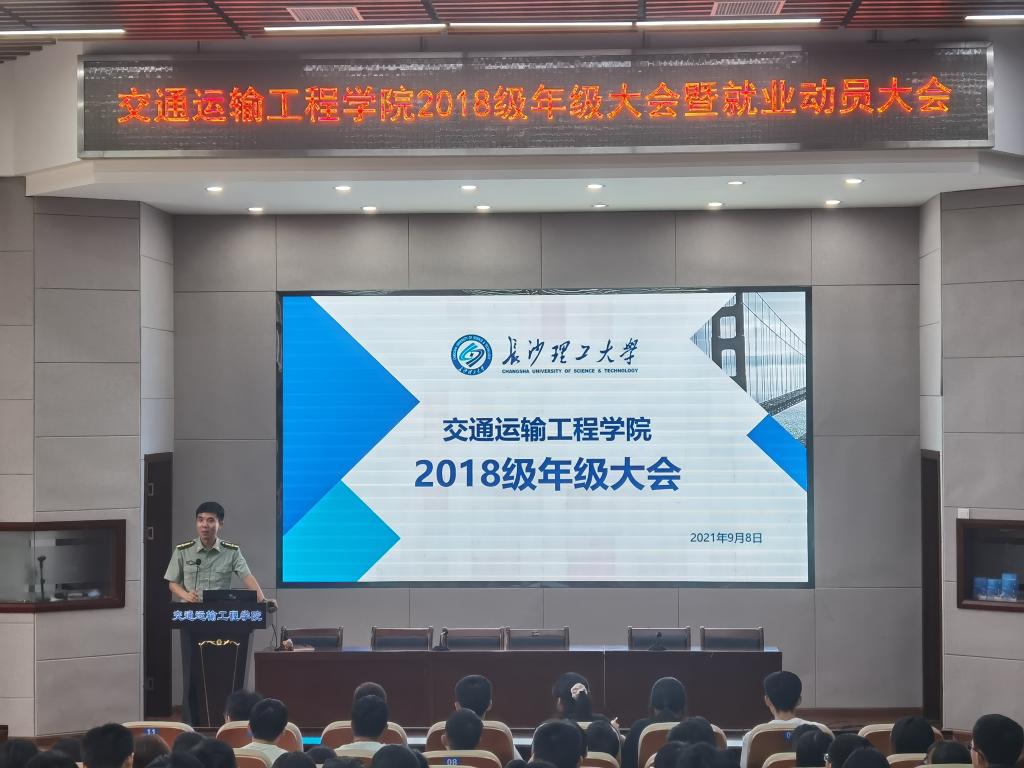 9月8日下午,交通学院于云塘校区工科二号楼交通科技报告厅召开2018级年级大会暨就业动员大会,院党委副书记王煜坤、就业专干曾凯参加会议。会议由2018级辅导员曹骁主持,2018级全体学生与会。