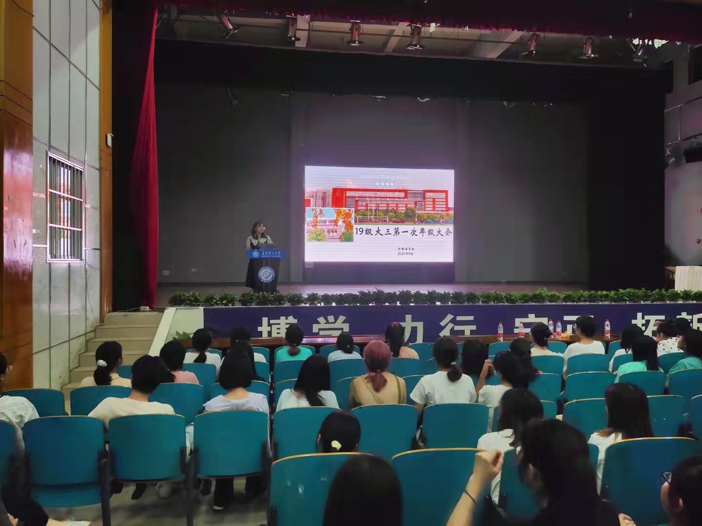 新学期伊始,为了更好地帮助19级大三学生提前做好考研和就业的规划,9月13日晚,外国语学院于学生活动中心科技报告厅组织了2019级年级大会。院党委副书记王双,院团委书记龙洋参加本次会议。