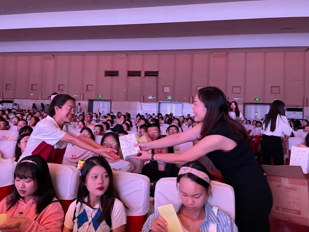 首先,到场的各位领导老师依次向新生们送上了中秋祝福和新生寄语,丁丹书记说:“这个中秋是21级经管学子第一次离家过中秋,大家虽然无法回家与家人团聚,但在经管的大家庭里大家并不会孤单。希望大家在今后的大学生活里,要好好学习,懂得感恩。今晚不要忘记给父母打个电话,报个平安,道一声中秋快乐。”陈均杰老师说:“热烈欢迎大家来到yl7703永利官网经管学院,经过军训大家晒黑了,但也强壮了。在中秋佳节来临之际祝大家身体健康,中秋快乐!”唐青副书记说:“这个中秋是21级经管YOUNG来到长理的第一个中秋,祝大家在经管学院变得越来越好!”谢朝华副院长说:“大家要勤于锻炼,多读书多学习,祝大家未来的学习之路一路辉煌!”领导老师们的节日祝福让新生们感受到来了经管学院就像是回到家一样。接着,带训教官们也为同学们送上了真挚的节日祝福。随后,联欢会的节目异彩纷呈,夺人眼球,经管舞队的舞蹈《Loca》率先点燃全场;陈丽君、张勋、张潇尹、张钰茹、姜凌妍、董庆峰带来的歌曲串烧涵盖了说唱、双人对唱、戏曲等各种演唱形式,精彩绝伦,引起观众阵阵欢呼;小品《仙女姐妹》笑点不断。在游戏环节中,21级新生积极踊跃,纷纷上台参与,也让联欢会的气氛达到了一个高潮。在游戏进行的同时,团学会的学生干部们将准备好的迎新小礼物和月饼分发到每一位21级新同学的手中。游戏过后,哈萨克族的凯撒和阿克两位同学演唱了歌曲《红色高跟鞋》,他们不仅用了汉语演唱,中间还用哈萨克语进行了改编;经管礼仪队进行了走秀表演,俊男靓女们的出现再次引起全场欢呼;苏铅楮、邓雅心、袁琳涵、陈尹仪带来了舞蹈串烧,她们用轻盈的舞步展示了青春的模样;最后,经管团学会带来大合唱《星辰大海》,观众席亮起了闪光灯,一闪一闪的灯光就像是星辰,用大声齐唱的歌声圆满结束了本场联欢会。