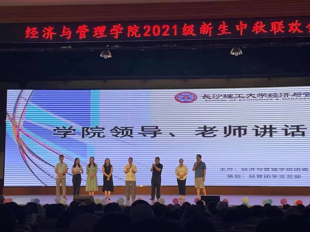 9月21日晚,经管学院在金盆岭校区五教大礼堂隆重举行了2021级新生中秋联欢会。出席联欢会的领导和老师有院党委书记丁丹、副书记唐青、副院长谢朝华、院关工委副主任陈均杰以及学工办各年级辅导员老师。联欢会由ACCA2002班毛通、市营2001班隆思主持。