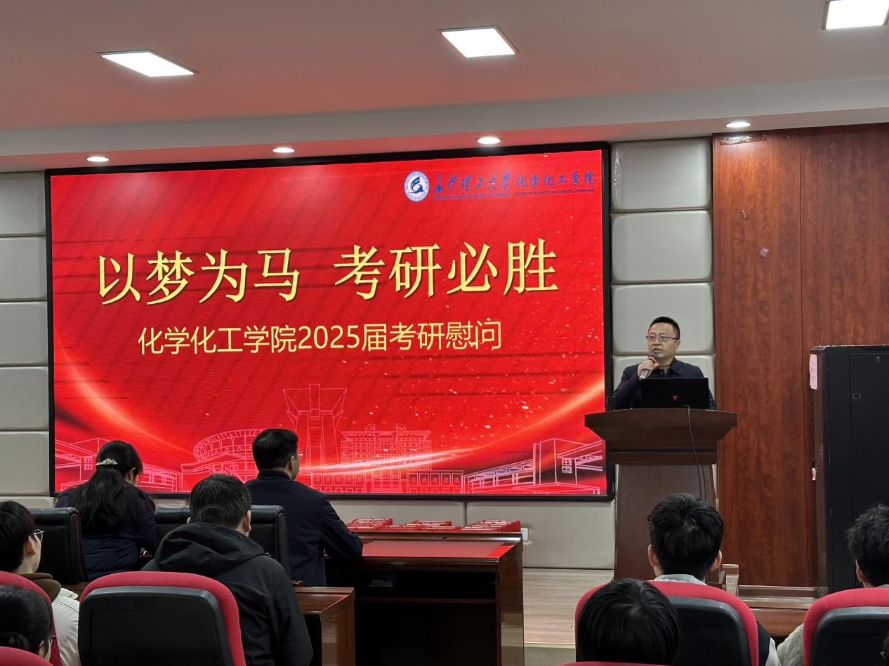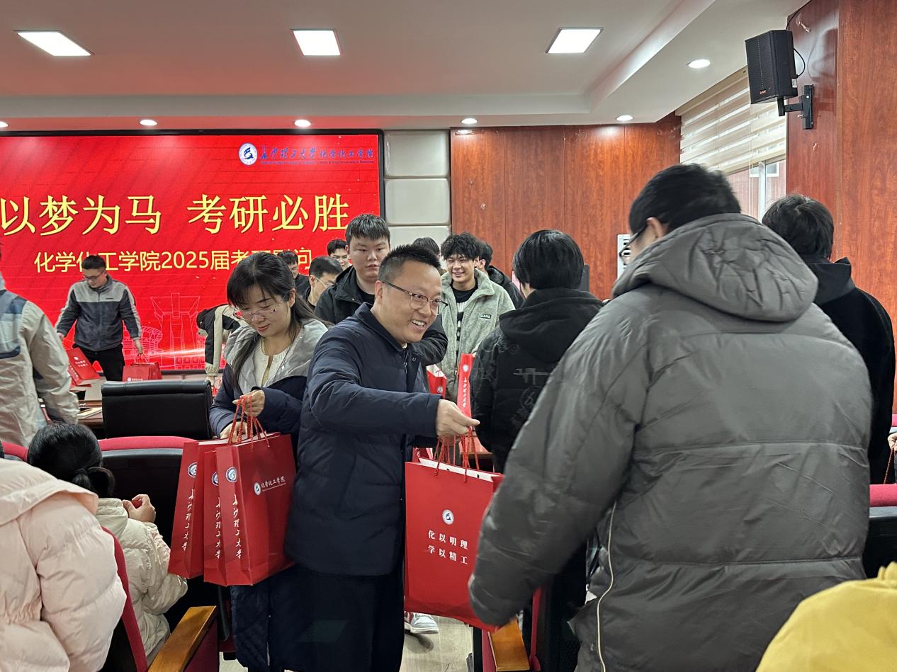 为进一步鼓舞考研学子的士气,传递学院对学子的关心与祝福,12月11日下午,化学化工学院在工三A320室组织了“考研送祝福”活动。活动旨在为即将参加2024年研究生入学考试的考生们加油助力,帮助他们缓解备考压力,激发他们的信心与勇气。学院全体院领导、辅导员和考研同学参加活动,活动由学院党委副书记李家春主持。