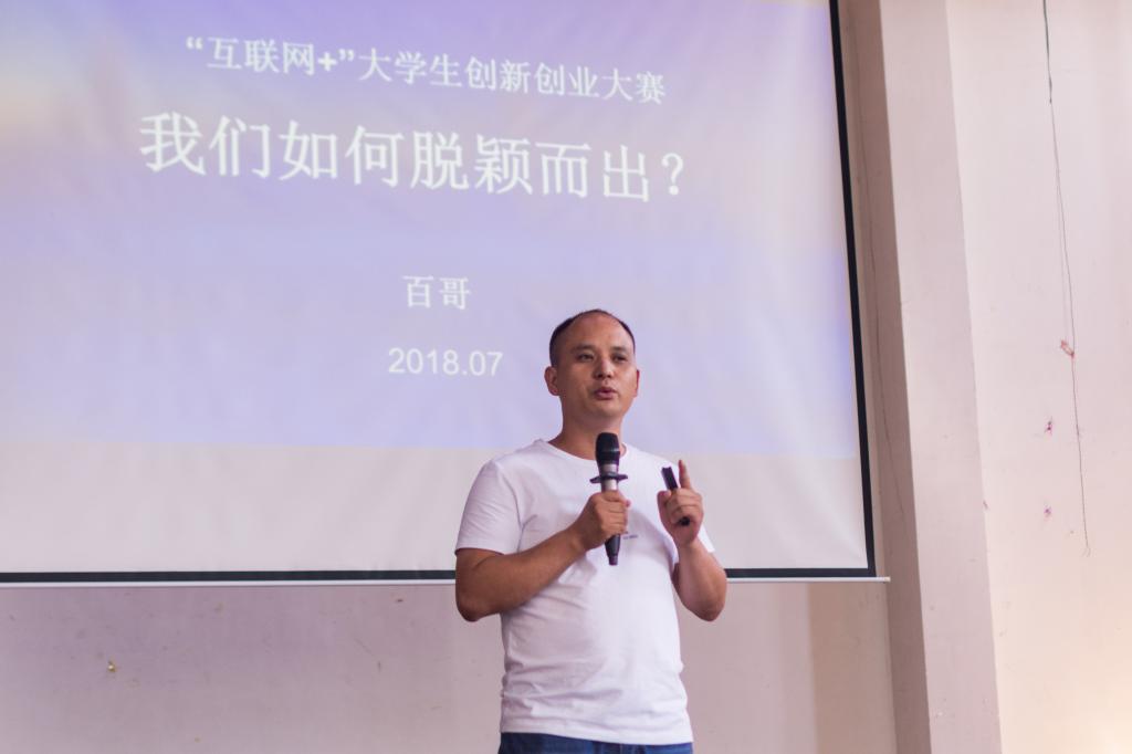 随后,小百文化团队创世人“百哥”袁勇兵介绍了自己对创业的认识和参加“互联网+”大赛的经验,并表达了对身为长理人的自豪与骄傲。“百哥”表示希望各位参赛人员能够把自己的兴趣和努力都注入到项目中去。