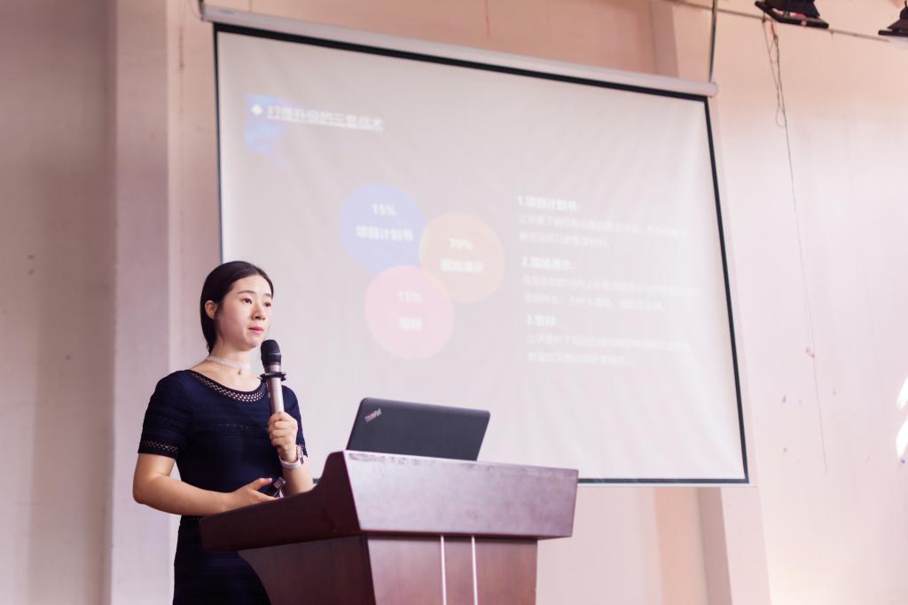 最后,“互联网+”优秀选手熊银做了关于“如何做好路演?”的分享。她告诉大家路演第一形象很重要,并就如何制作路演PPT、陈述技巧等进行了详细的简介,她建议大家精心准备,自信上台,完美地展现自己的项目。