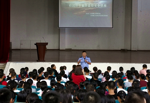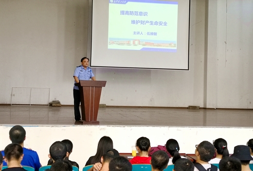为提高新生的安全防范意识,培养良好的安全行为习惯,9月28日、30日中午,保卫处在云塘校区学生活动中心报告厅举办了两场2018级新生安全教育讲座。讲座邀请暮云派出所民警陈国军和保卫处副处长伍接朝对新生普及安全常识教育。化学学院、物电学院、材料学院全体新生和辅导员参加教育讲座。
