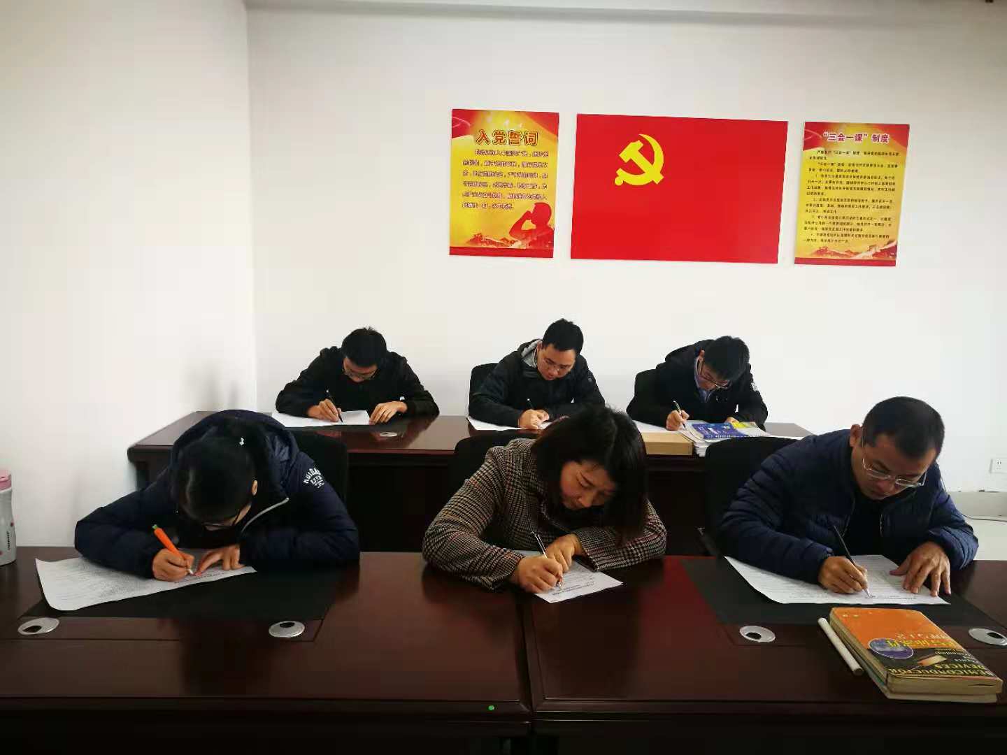 此次测试采用由学院各教工支部分别组织、统一集中开卷答题的形式进行,除5位老师请假未参加外(均办理了正规请假手续),其余22位教师党员均以高分通过测试。