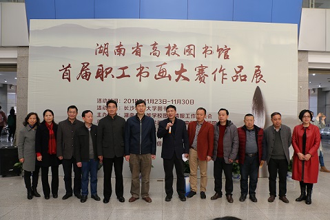 11月23日上午,由湖南省高校图书情报工作委员会主办,湖南师范大学图书馆和永利官网图书馆联合承办,湖南省高校图书馆首届职工书画大赛颁奖典礼及书画作品会展在云塘馆B-102会议室举行。副校长叶泽,湖南大学图书馆馆长兼湖南省图工委秘书长郑章飞、湖南师范大学图书馆馆长周玉波等图书馆领导、湖南维度公司总经理黄开兴、湖南世纪超星有限公司总经理姜波、湖南一帆图书有限公司总经理罗令坤等嘉宾,以及来自省内高校图书馆同仁近100人出席了本次活动。此次大赛共有来自省内13所高校图书馆36位职工的56幅作品参加了书画作品大赛。
