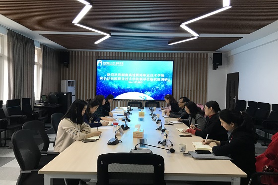 3月15日,湖南高速铁路职业技术学院校企合作处处长刘芳、副主任陶曙教等5人与长沙民政职业技术学院国际教育学院副院长杨帅、留学生事务专员廖甜利2人来国际学院调研留学生培养及留学生汉语水平教学,并深入了解永利官网HSK考点工作。副院长甘海鹰、学院大学生学习与发展中心主任干事汤路以及汉语教研室等相关老师参加调研会。