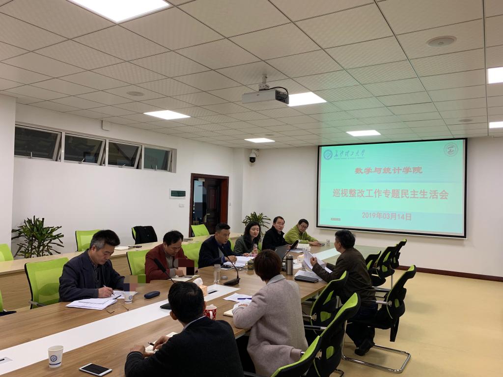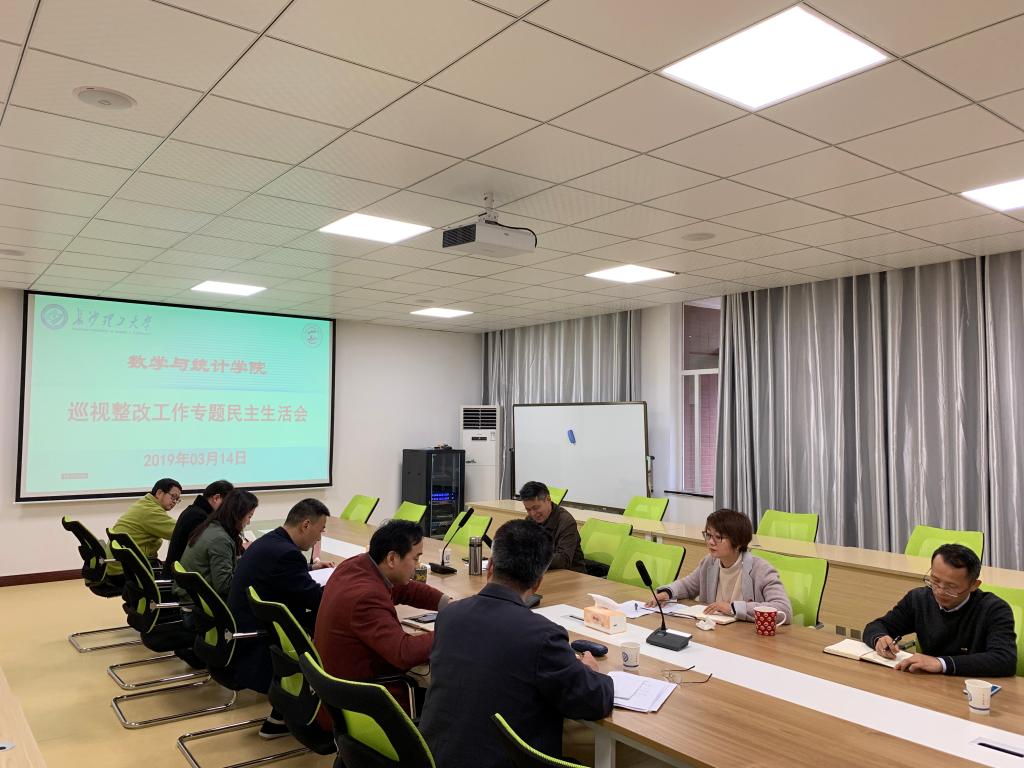 3月14日上午,数统学院党委在理科楼A212召开巡视整改专题民主生活会。学校督查办公室督查专员毛光华同志进行指导与点评。会议由党委书记张宏伟主持,学院党委领导班子成员参加。