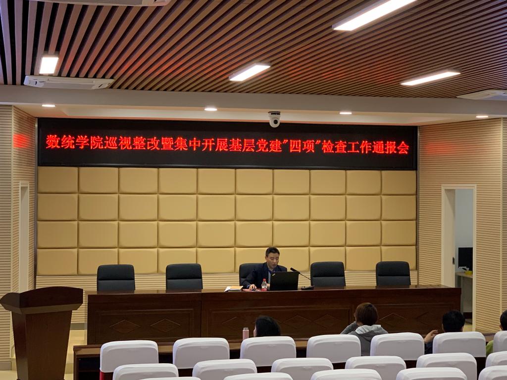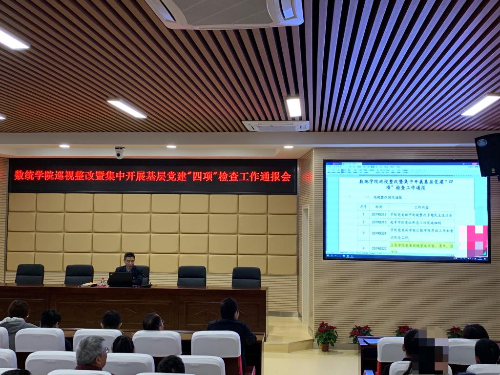 4月2日下午,数统学院在理科楼A200召开“巡视整改暨集中开展基层党建‘四项’检查工作通报会”,会议由党委书记张宏伟主持,学院全体师生党员参加。