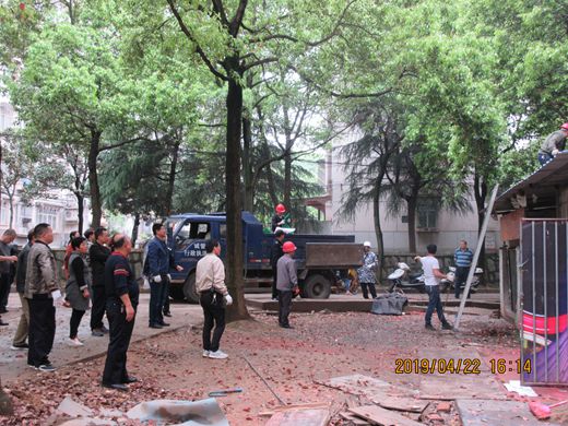 为落实省委巡视组巡视整改意见,保卫处积极推进金盆岭校园环境专项整治,按照校地联合办公室商定的工作方案,4月22日至24日联合天心区城管行政执法队,金盆岭街道办、食药监、天心区城管中队、金盆岭派出所等政府部门依法对校区7家门店违建摊棚予以拆除。