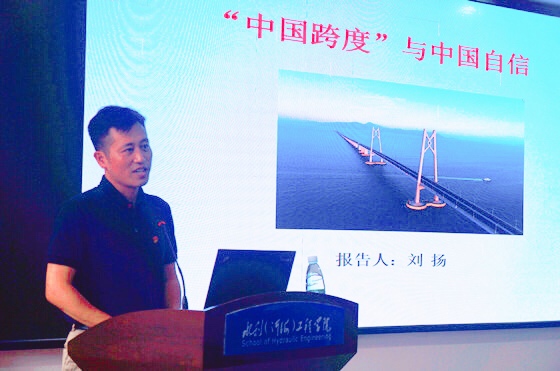 下午,刘扬在工三B319作题为《“中国跨度”和中国自信》的思想教育报告。他从曾经的辉煌、痛苦的往事、逐梦的历程三个部分入手,通过介绍不同时期我国桥梁的故事,向大家展示了中国桥梁从强到弱,从技术跟跑到领跑的过程。刘扬告诫大家,“一代人有一代人的长征,一代人有一代人的担当”,作为新时期的高校教师,我们应该努力担当,做有理想信念、有道德情操、有扎实学识、有仁爱之心的“四有”好老师。