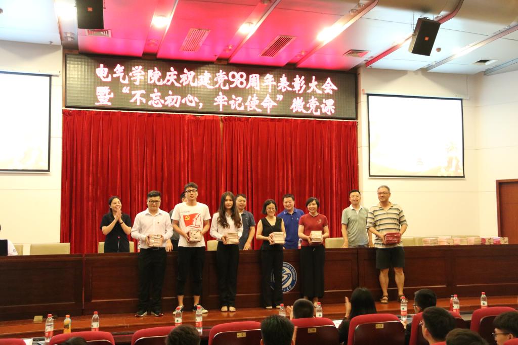 7月2日下午,电气学院庆祝建党98周年表彰大会暨“不忘初心,牢记使命”微党课在图书馆报告厅举行。全院师生党员及入党积极分子代表近300人参加,学院党委副书记丁丹主持大会。