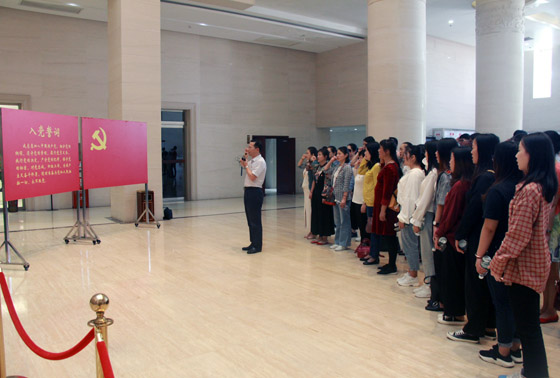 部署动员大会召开前,何纯芳率领全体党员齐聚陈列馆一楼大厅,在名为“潇湘魂”的毛泽东、刘少奇、任弼时三位伟人的雕像前,在鲜艳夺目的党旗下,庄严地举起右拳,重温了入党誓词。