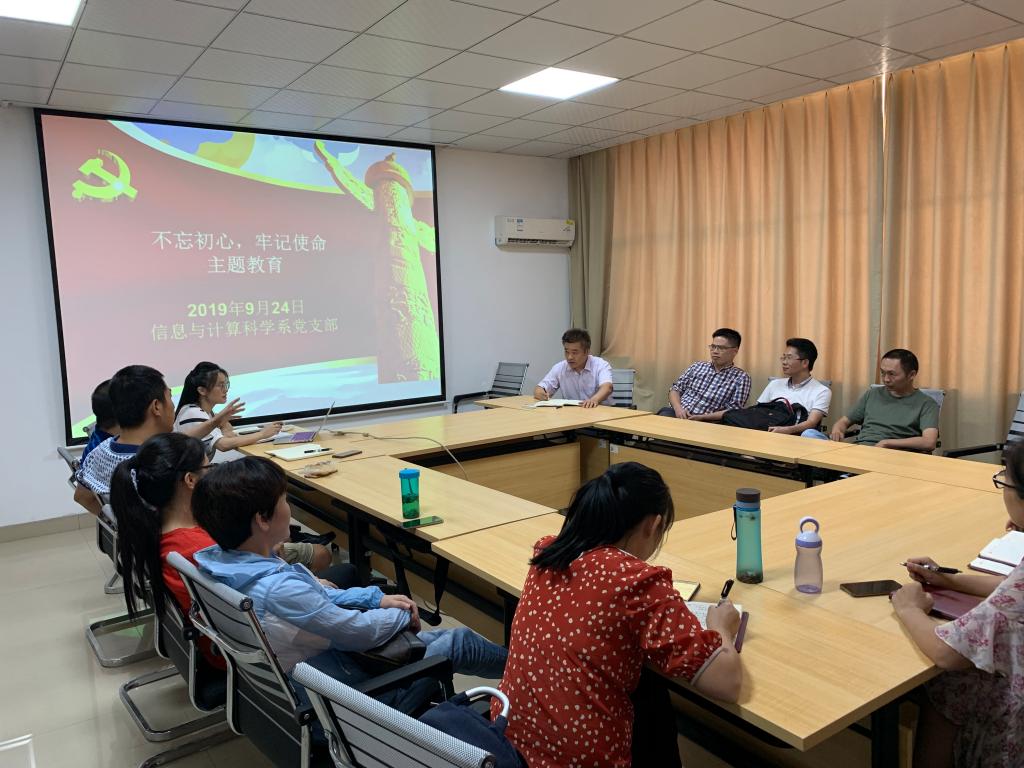 为做好学院主题教育调查研究工作,促使主题教育的调查研究、检视问题、落实整改等三个环节取得扎实成效,数统学院党委领导班子成员在9月24日下午,分别到各自所联系系部开展“不忘初心、牢记使命”主题教育专题调研,深入了解教学、科研和学生工作情况。
