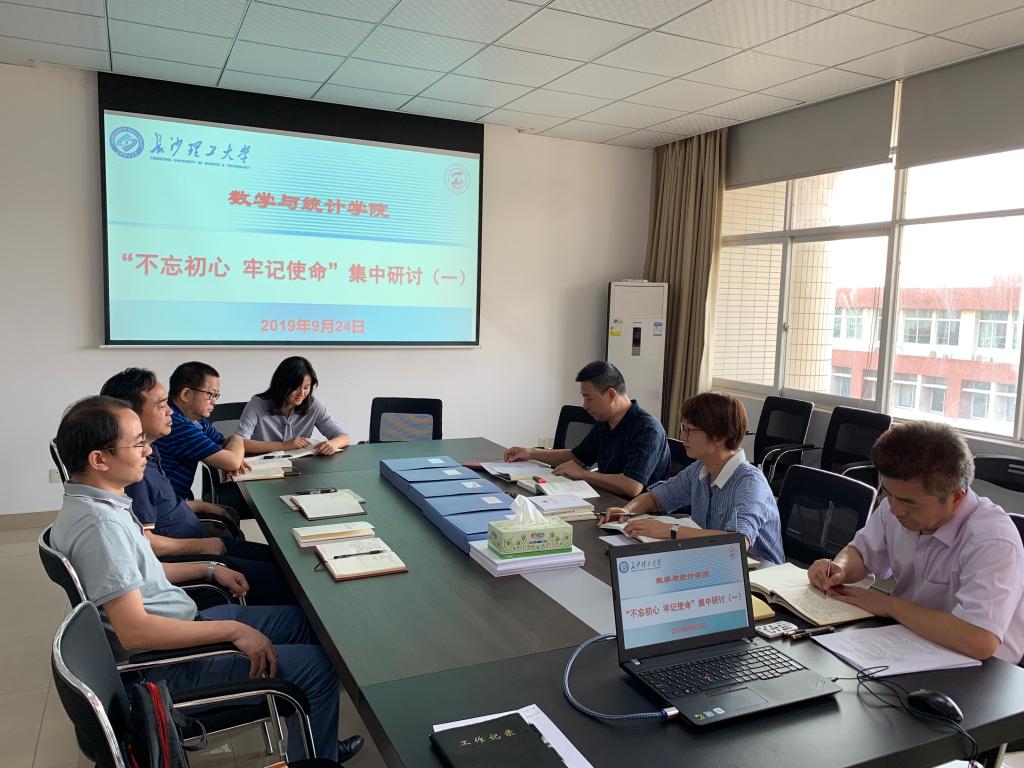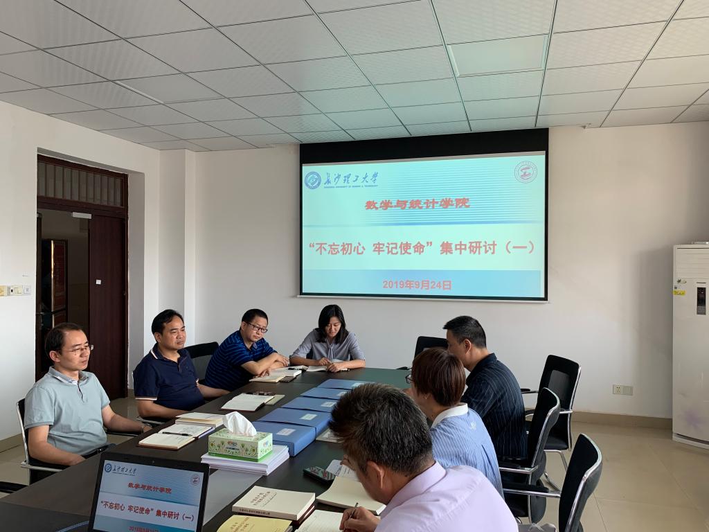 9月24日,数统学院党委班子在学院党员活动室(理科楼A503)开展“不忘初心、牢记使命”主题教育第一次集中研讨交流,班子成员就前一阶段认真学习《习近平关于“不忘初心、牢记使命”重要论述选编》《习近平新时代中国特色社会主义思想学习纲要》等的情况,交流了各自的思想。