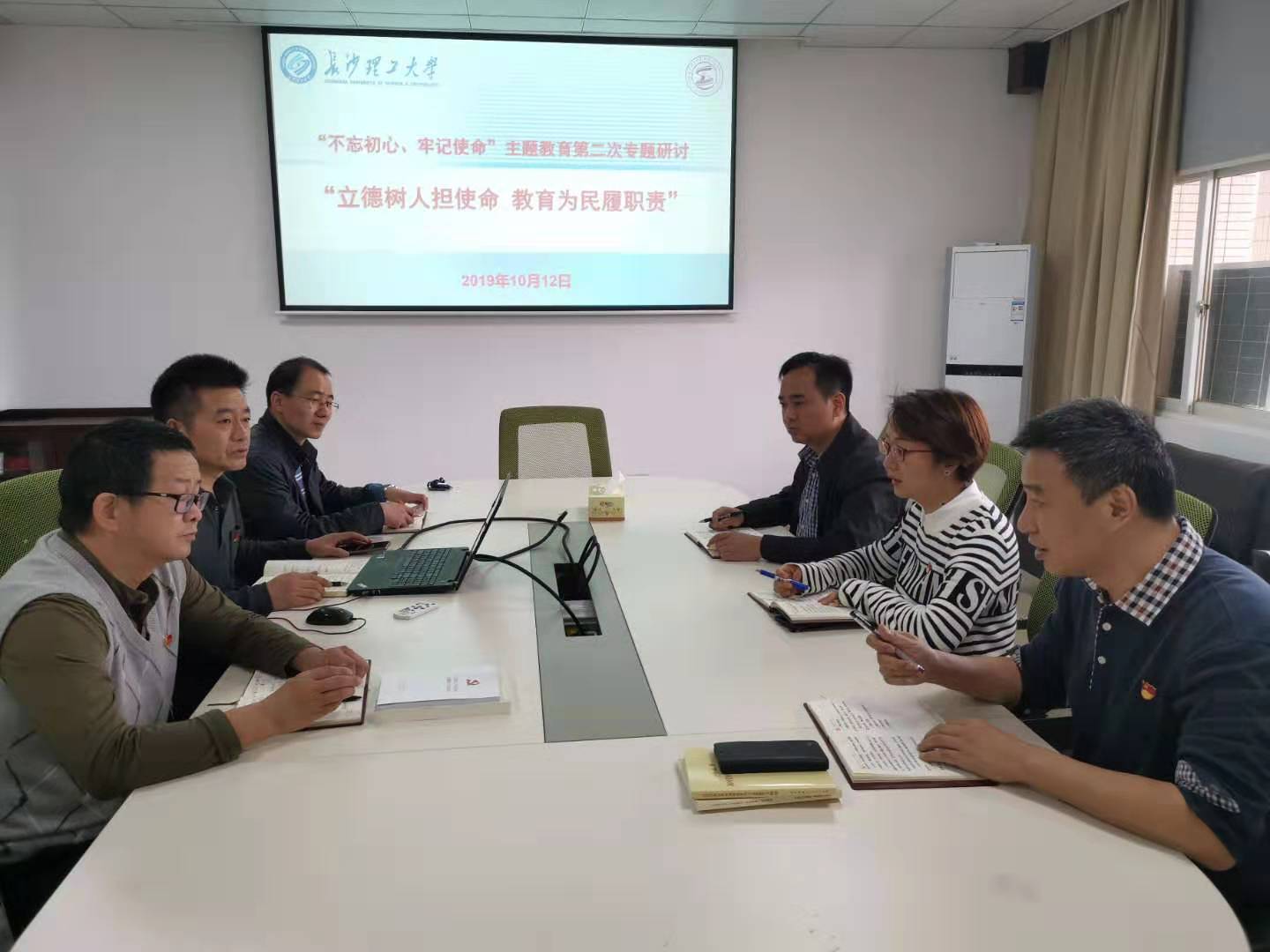 10月12日中午,数统学院党委召开“不忘初心、牢记使命”主题教育专题学习研讨会,围绕“立德树人担使命、教育为民履职责”为专题,树新风,扬正气,讲团结,顾大局,建设健康向上的学院文化、在深入学习习近平总书记关于教育、师德师风一系列重要论述的基础上,结合“不忘初心、牢记使命”主题教育和学院工作实际,就新形势下如何建设健康向上的学院文化、加强和改进教学科研工作等深入研讨,以问题为导向,以工作落实为目标,探讨了学院改革发展中如何建设学院文化、提升教学科研的能力和水平等问题。会议由党委书记张宏伟主持。