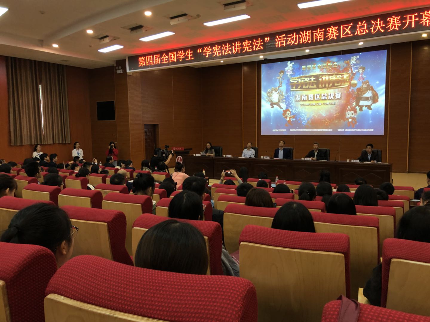为贯彻落实习近平总书记关于宪法学习宣传教育的系列重要指示精神,在全社会营造尊崇宪法、学习宪法的氛围,10月12—13日,由湖南省教育厅主办的第四届全国学生“学宪法讲宪法”湖南赛区总决赛在湖南工商大学举行。