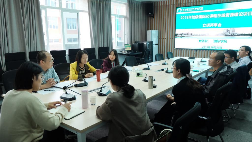 10月22日下午,学校教务处委托国际学院组织专家在新能源大楼1栋416会议室召开第二批国际化课程在线资源建设项目立项评审会,来自交通、土木、水利等学院的6名专业老师参加了答辩。本次评审由化学与生物学院李丹、能源与动力工程学院冯磊华、信息化建设管理与现代教育中心付强担任专家评委。国际学院副院长秦卫星、中外合作办学教务办公室负责人罗帅参加。
