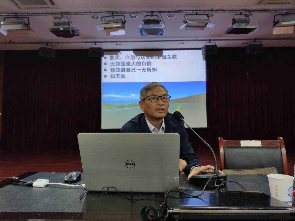 1022日,学校理论宣讲团成员成松柳教授以《文化认知·文化自信与文化繁荣》为主题,在文科楼B204进行不忘初心、牢记使命主题教育理论宣讲。讲座由文法学院党委书记孔伟红主持,来自文法学院、体育学院、图书馆教职工及学生党员,共计200余人听取了本次讲座。