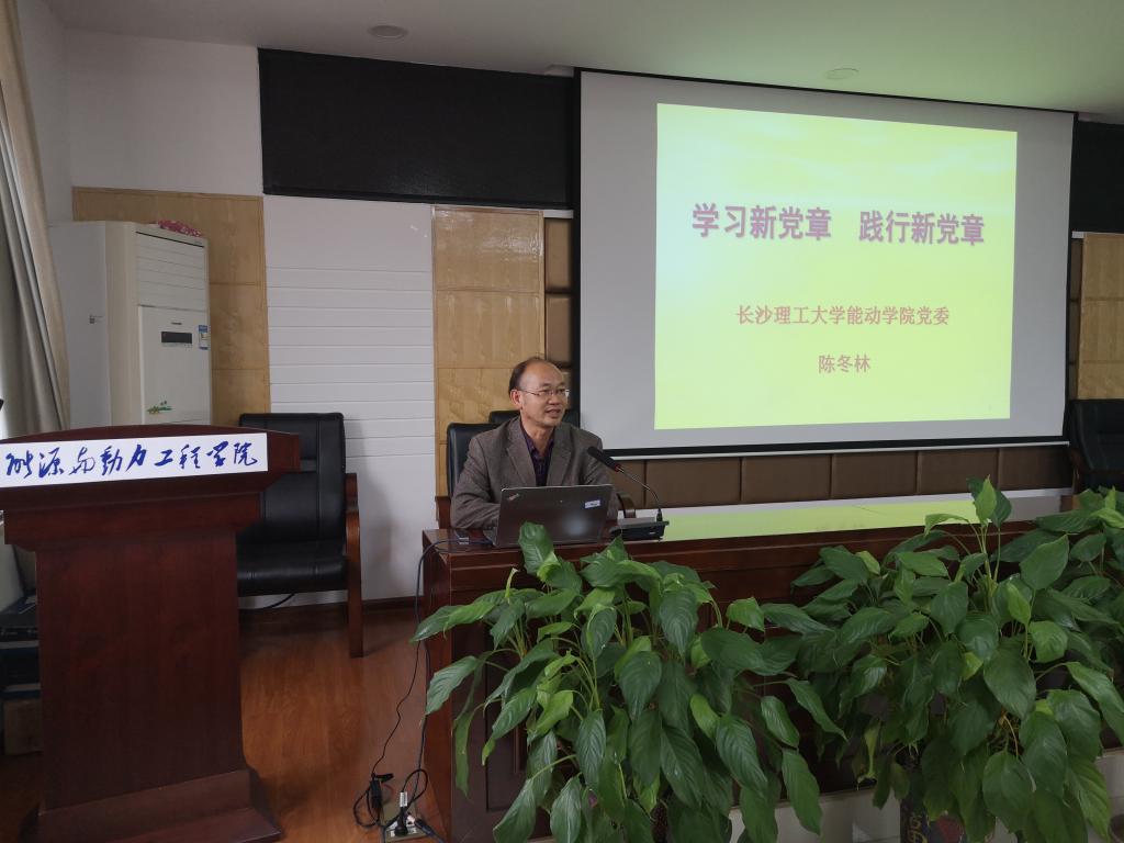 根据学院“不忘初心、牢记使命”主题教育工作安排,10月22日下午,院党委书记陈冬林在新能源大楼2号楼502会议室为全体教工党员、部分学生党员讲授“学习新党章,践行新党章”专题党课。