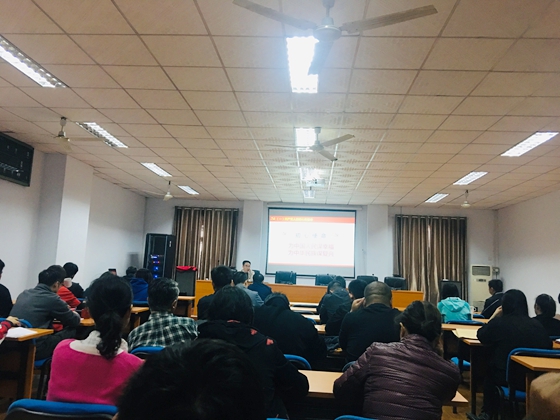 根据学校不忘初心、牢记使命主题教育总体部署安排,1023日下午,院党委书记黄自力在金盆岭校区二教二楼会议室上专题党课。全体教职工参加学习。