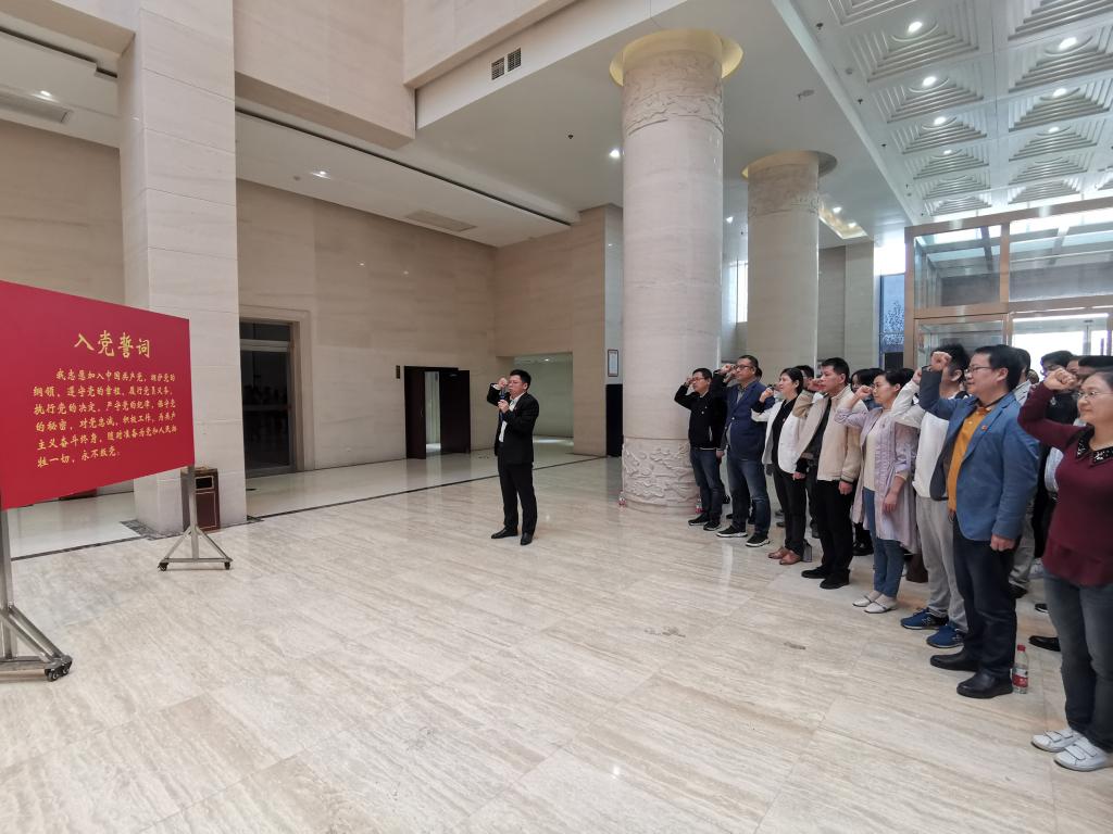 走进展厅,首先看到的是名为“潇湘魂”的毛泽东、刘少奇、任弼时大型伟人半身雕塑。三位伟人亲切、伟岸的形象近在眼前,令人倍感振奋。右侧中国共产党党旗鲜艳夺目,气氛庄重肃穆。在院党委书记王宏的带领下,全体师生党员面对伟人雕像和中国共产党党旗,重宣入党誓词。