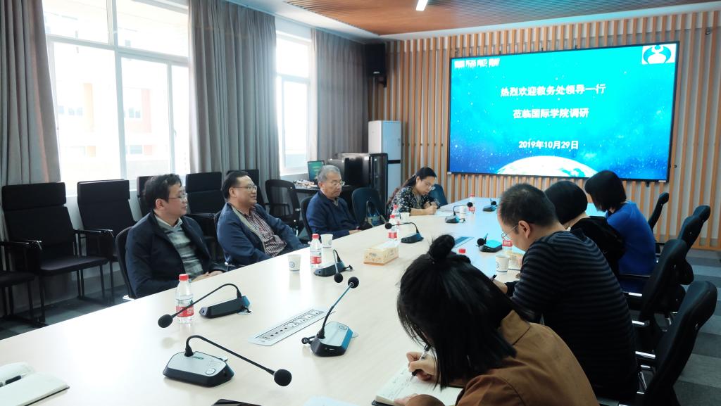 10月29日下午,教务处处长刘朝晖,副处长贺跃光、刘思强,教学运行管理办公室主任郭利一行到国际学院考察、调研,校党委委员兼国际学院党总支书记付嫦娥、院长陈瑜等陪同。