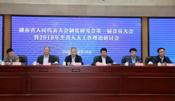 10月30日上午,湖南省人民代表大会制度研究会第一届会员大会暨2019年全省人大工作理论研讨会在长沙召开,省人大常委会党组副书记、副主任黄关春、王柯敏,秘书长胡伯俊出席会议。湖南省人民代表大会制度研究会第一届会员大会举行。会议表决通过了研究会章程、理事名单和会长、副会长、秘书长,标志着湖南省人民代表大会制度研究会正式成立。根据表决结果,省人大常委会党组副书记、副主任王柯敏当选为会长;省人大常委会研究室副主任王向前、杨志勇当选为副会长;研究室综合处处长戴志华当选为秘书长,兼法定代表人。