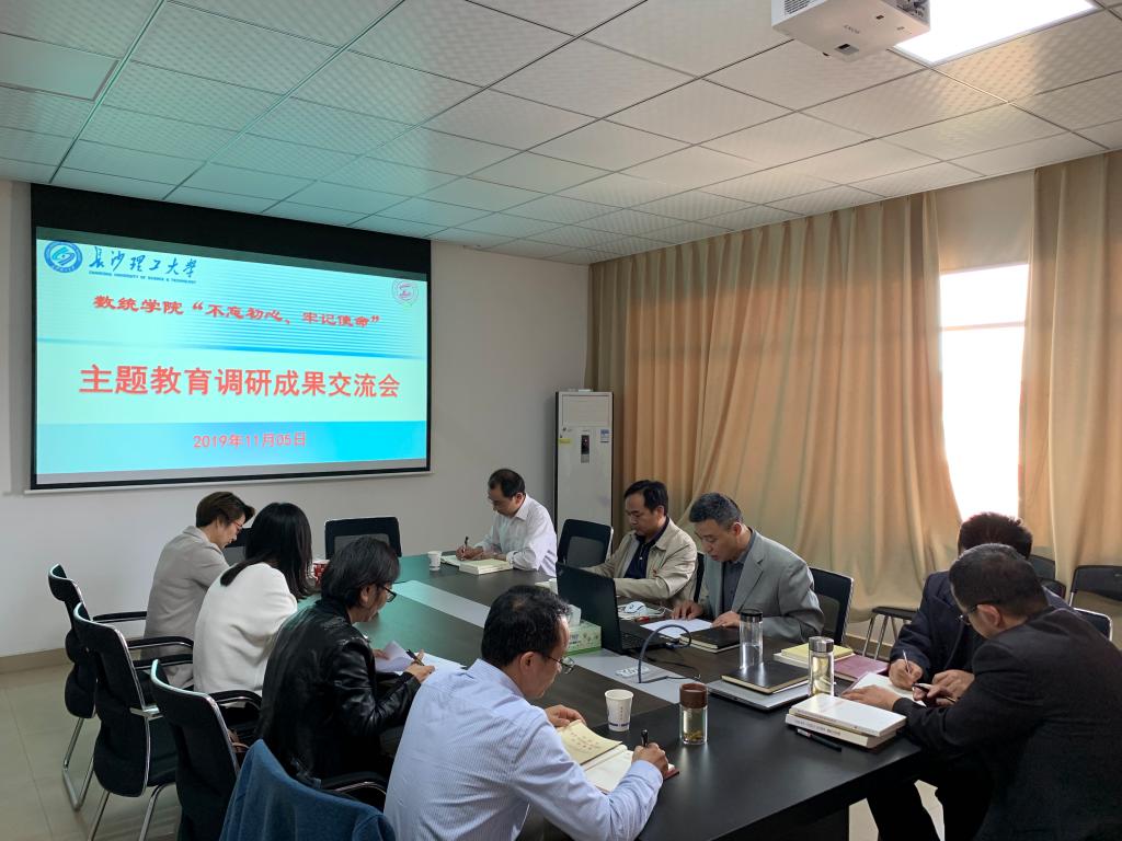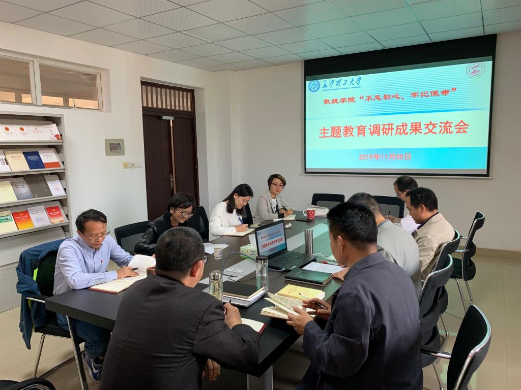 11月5日下午,数统学院在理科楼A503党员活动室召开“不忘初心、牢记使命”主题教育调研成果交流会,学校“不忘初心牢记使命”主题教育第一指导组蔡立新老师到会指导,院党委委员、领导班子成员参加,会议由学院党委书记张宏伟主持。
