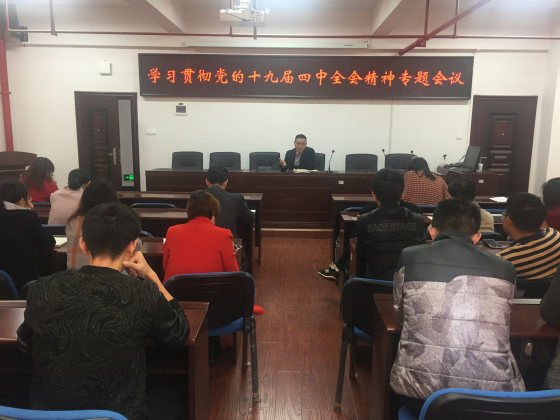 张国强首先向全体职工传达了党的十九届四中全会精神,分别从“一个重要判断”、“十三个坚持的制度优势”、“一个总体目标”、“十三个坚持和完善的未来部署”四个视角详细解读了十九届四中全会的精神内涵和重大意义。他强调,全院教职工要深刻领会、准确把握全会的精神实质,切实把思想和行动统一到习近平总书记重要讲话和全会精神上来,要以习近平新时代中国特色社会主义思想为指导,增强“四个意识”,坚定“四个自信”,做到“两个维护”,提升发展学院能力,结合“不忘初心、牢记使命”主题教育“回头看”工作,对照清单事项进行认真梳理,对照四中全会精神进行深入整改,建立健全各项规章制度,形成科学规范、运行有效的学院治理管理制度体系。凝心聚力,把四中全会精神融会落实到学院建设与发展中去,大力推进学院治理体系和治理能力建设,坚定制度自信、强化制度意识、维护制度权威、抓好制度落实,努力把制度优势转化为治理效能,为学院发展路径、学科布局和长远规划提供坚强的政治保证。