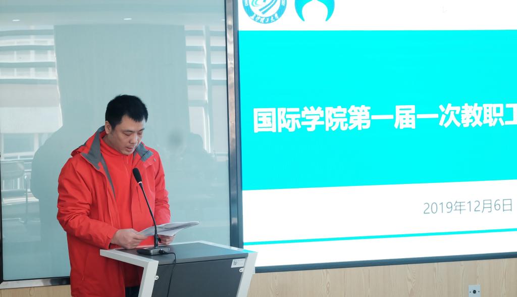 12月6日下午,国际学院第一届一次教职工暨工会会员大会在新能源大楼1栋404室举行。学校党委委员兼学院党总支书记付嫦娥主持会议,学院全体教职工参加。