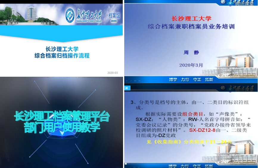 3月17—19日,为认真落实学校党委和省档案馆有关疫情防控决策部署精神,档案馆面向全校综合档案兼职档案员,就综合档案材料收集归档、综合档案业务管理系统平台使用等举办了三次线上专场培训,全校230多人次参加了本次培训。培训采取腾讯课堂在线直播方式进行,确保了疫情期间档案工作的有序开展,做到了疫情防控和工作推进两不误。