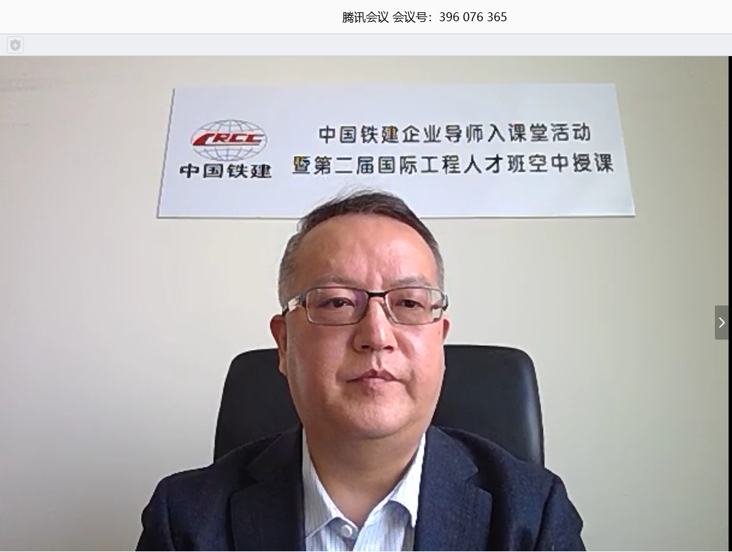 疫情期间,学校认真落实“停课不停学、停课不停教”的要求,狠抓人才培养质量。校企联合培养班是近年来学校创新人才培养模式的探索,与行业头部企业联合培养行业急需复合型技术管理人才,为国家战略和经济社会发展主战场培养“底色亮、实践强,有情怀、敢担当”的复合型人才精英,采用3+1订单式培养方式。中国铁建股份有限公司·yl7703永利官网“国际工程人才联合培养班”于2018年开始举办,目前已培养出100余名服务海外工程建设的优秀毕业生。校企双方在联合培养方案中,除增加一定行业发展前沿专业课程外,还专门增加了思政引领课程,引领学生在坚定理想信念、厚植爱国主义情怀、培养奋斗精神等方面下功夫,本次邀请企业领导开展线上讲座,就是为了认真落实联合培养方案,不因疫情影响联合培养质量,达到校企生多方共赢的目标。