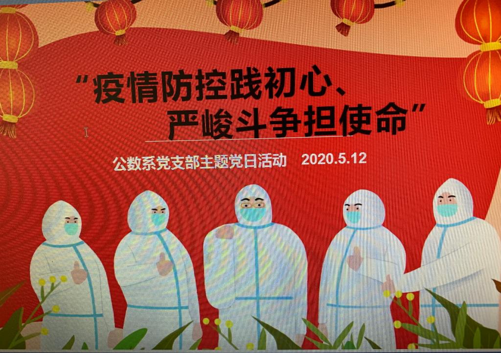 党员们充分交流网络教学实战经验,对公共数学系列课程的课程思政献计献策,讨论典型案例、优化实操案例,并结合当前疫情和国际形势,讨论如何在后继网课教学中进行有效思政,如何“疫情防控践初心、严峻斗争担使命”,正向引导学生适应网课教学、合理规划学习和运动时间、科学应对疫情、不传谣不信谣、积极投身社区防疫志愿工作,坚信在党的领导下,积极响应国家抗疫号召,相信全国人民必能高效的、精诚一致地应对疫情,逐步复工复学,恢复经济与政治稳定。