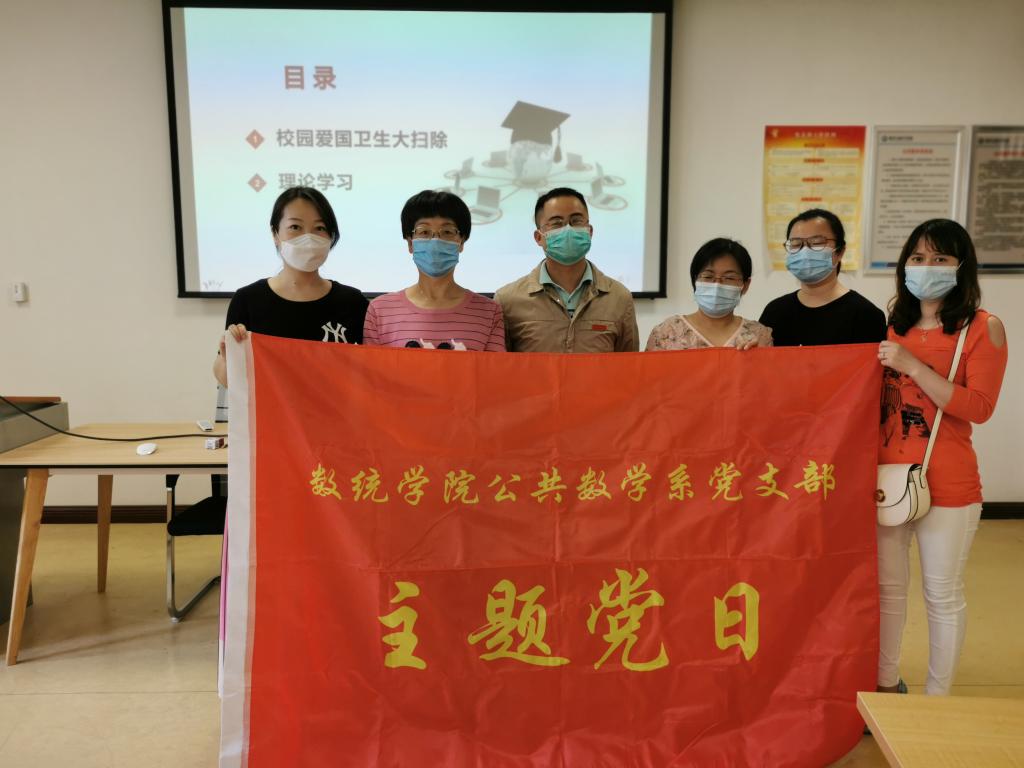 5月12日下午,数统学院公数系支部全体党员开展了主题为“疫情防控践初心、严峻斗争担使命”的党日活动。活动由支部书记吴烨主持,分为两个部分进行。首先,支部全体党员进行校园爱国卫生大扫除,对支部活动室、学院公共楼道等进行了卫生大扫除。接着,在支部活动室开展了理论学习,学习内容主要分为:支部前期网络教学突出事例总结;交流网络教学心得、经验、困境;学习研讨网络教学新技能;深入落实公数系列课程的课程思政等四部分。