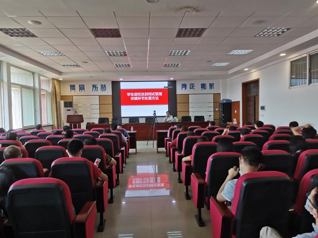 符慧林在全院大会上组织大家学习了习近平在中央政治局常务委员会会议研究应对新型冠状病毒肺炎疫情工作和统筹推进疫情防控和经济社会发展各项工作等系列重要讲话精神,传达了学校有关返校复学的会议要求。他强调,在疫情大考面前,全体党员干部要冲锋在前、率先垂范,全院教职工要发扬主人翁精神,积极扎实做细做好返校复学的各项工作,做到疫情防控把住关键人物与关键环节,教育教学工作确保质量,毕业生就业做到精准帮扶,主动提升防范化解重大风险的定力和能力,为确保学院各项工作安全、有序、高效开展贡献自己的智慧与力量。