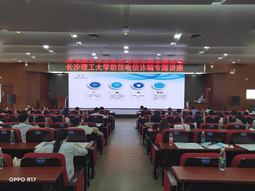 5月22日下午,2020年防范电信网络诈骗专题讲座在永利官网国际交流中心二楼科技厅举行,讲座由保卫处和学生工作部(处)联合举办,邀请长沙市公安局反电信网络诈骗中心民警翟安授课,长沙市天心区暮云派出所副所长罗立军,学生工作部部长艾楚君、保卫处相关领导、各教学院(系)副书记及全体辅导员参加,保卫处处长张祎主持。