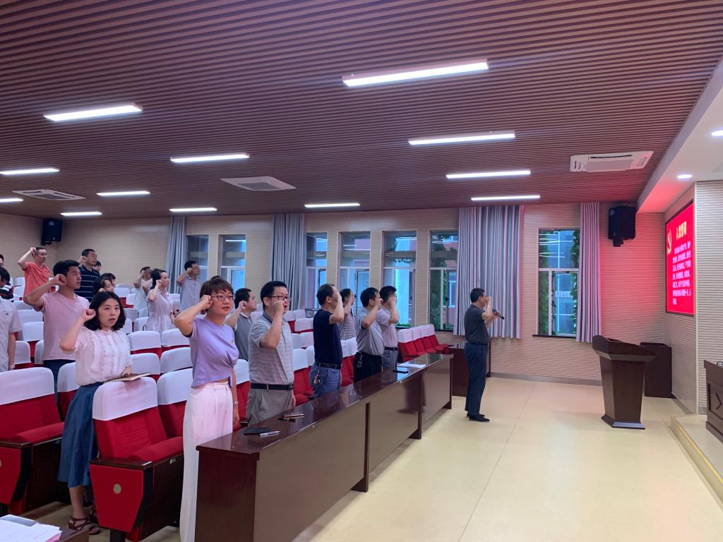 首先,张宏伟带领全体党员重温入党誓词。入党誓词是由《党章》规定的,是每个党员在入党时向组织表明的决心与态度,是对入党以后做什么、不做什么的郑重承诺和许愿,是对党员要求的精华和浓缩。重温入党誓词,回头看着自己加入党组织后一路走来的脚印,正者更正、歪者纠偏,不忘初心、坚定信仰。