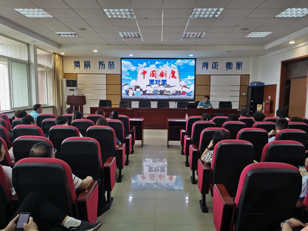 9月15日下午,电气学院党委组织全院教职工在院学术报告厅集中观看《中国制度面对面》微视频,院党委书记符慧林为教工党员上党课。学院领导班子成员和全院教职工参加。
