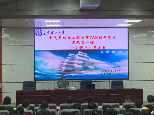 电气与信息工程学院第一堂党课开始前,首先播放了“长理榜样”演讲会视频,向广大新生党员展示了电气学院教师团队敢为人先、甘于奉献的风采。党委书记符慧林在党课中对新生提出了三点希望,一是明确身份,明确读书的目的;二是注重全面发展,学会与人共事与合作;三是重视细节的处理。他寄语广大研究生要珍惜青年的大好时光,树立远大志向,为实现中华民族伟大复兴贡献聪明才智。