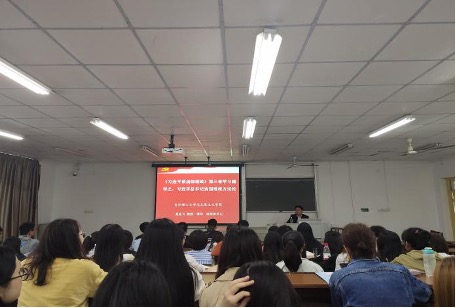 马克思主义学院党委书记易显飞以“《习近平谈治国理政》第三卷学习辅导之——习近平总书记治国理政方法论”为主题,从方法论的角度带领大家深入学习习近平总书记关于治国理政的重要论述,指导同学们深刻领悟蕴含其中的历史眼光、战略思维、系统思维、人本立场、创新思维、底线思维、坚持问题导向、知行合一、分类指导及三分法思维。易显飞分享了个人学习体会,鼓励同学们多读书,读好书,深入学习贯彻习近平新时代中国特色社会主义思想,在学思践悟中牢记初心使命,在知行合一中主动担当作为,在学习和实践中加快成长。