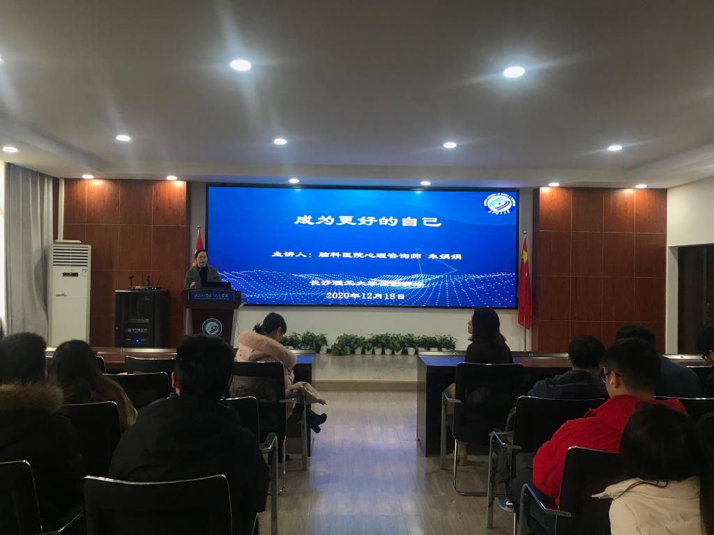 12月18日上午,永利官网第十二届研究生云影讲坛之“成为更好的你”心理知识讲座在云塘校区工三B319举行。湖南省第二人民医院主治医生、心理治疗师朱娟娟作了以《轻松应对心理压力 成为更好的自己》为主题心理健康知识讲座。参加此次讲座的有水利学院党委书记喻玲娜、学工办主任刘灿、研究生辅导员肖苹宁、计通学院辅导员易亭亭以及来自水利学院和计通学院100余名研究生。