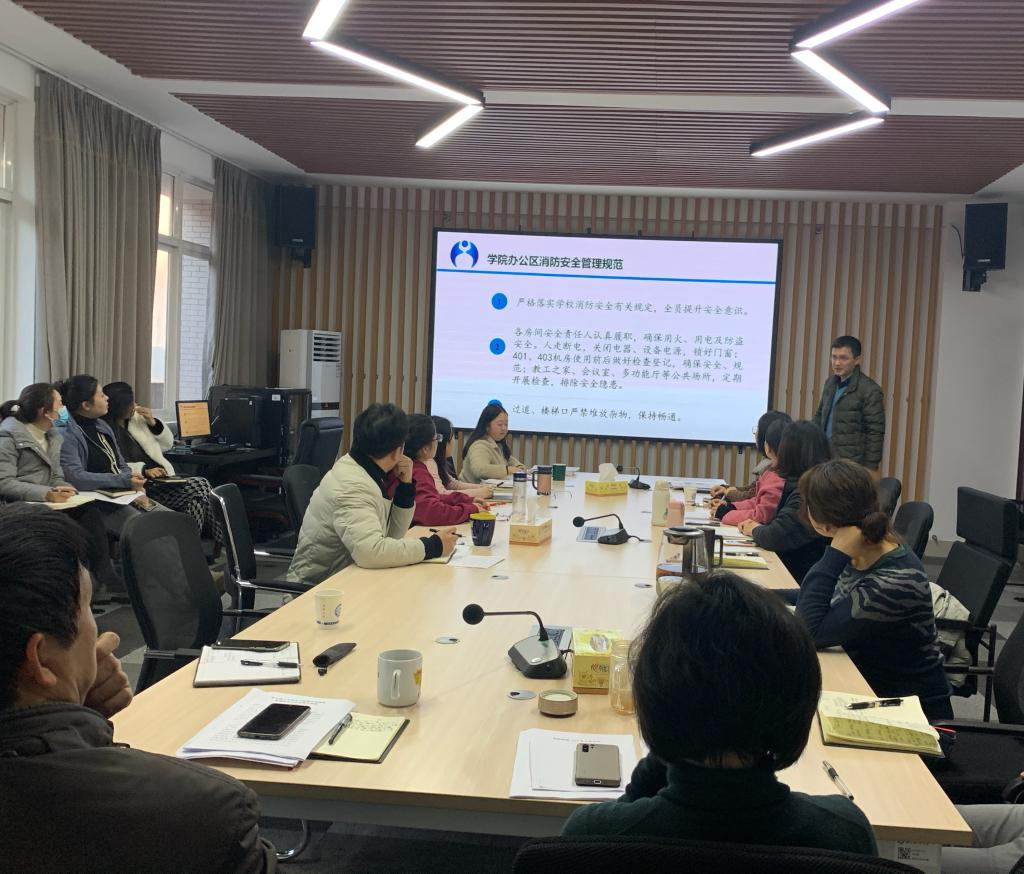 最后,院党总支副书记兼副院长张锐,向大家作了消防安全知识宣讲,重点阐述了行政办公区域消防安全管理规范、消防安全小常识及火灾自救逃生技巧,告诫大家筑牢安全意识,杜绝事故隐患。