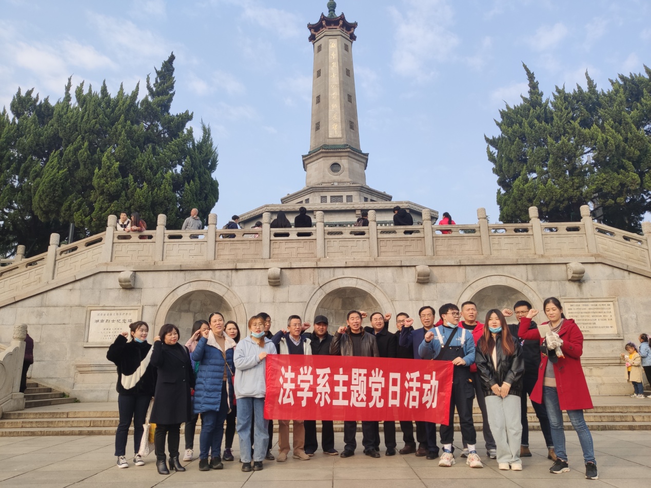 12月27日下午,法学系组织全体教职工党员和部分学生党员开展主题党日活动。全体成员集体参观湖南人民英雄纪念陈列馆,瞻仰烈士纪念馆,缅怀革命先烈,追思革命历程,并感受思想和精神上的洗礼。在纪念碑下的烈士纪念广场,全体党员面对鲜红的党旗,重温入党誓词,表达了不忘初心、牢记使命的坚定信念。大家纷纷表示,要继承烈士遗志,发扬革命传统,以实际行动学习贯彻习近平新时代中国特色社会主义思想,为实现中华民族伟大复兴的中国梦和开启全面建设社会主义现代化国家新征程作出应有贡献。
