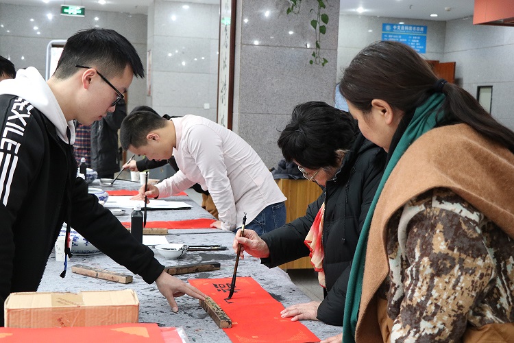 2020年12月29日下午,主题为“执笔绘红笺 暖墨迎新年”的送春联活动于云塘校区图书馆大厅进行。永利官网墨浪书画协会指导老师杨珍、李正庚,图书馆部分老师及书画协会会员40余人参加活动。活动吸引了络绎不绝前往观赏、游乐及索取春联的师生近200人,活动持续了近三个小时。