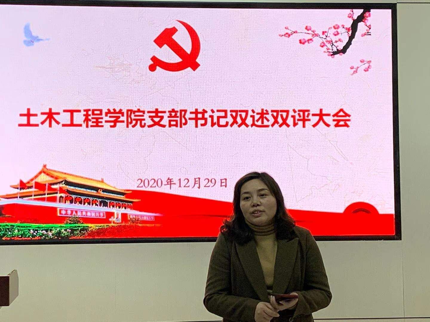 12月29日下午,土木工程学院在工科二号楼学生发展中心召开2020年度支部书记双述双评大会,全体支部书记集中向党委进行述职。学院全体党委委员和教工、学生党支部书记参加,院党委书记丁丹主持会议。