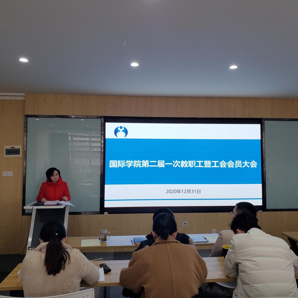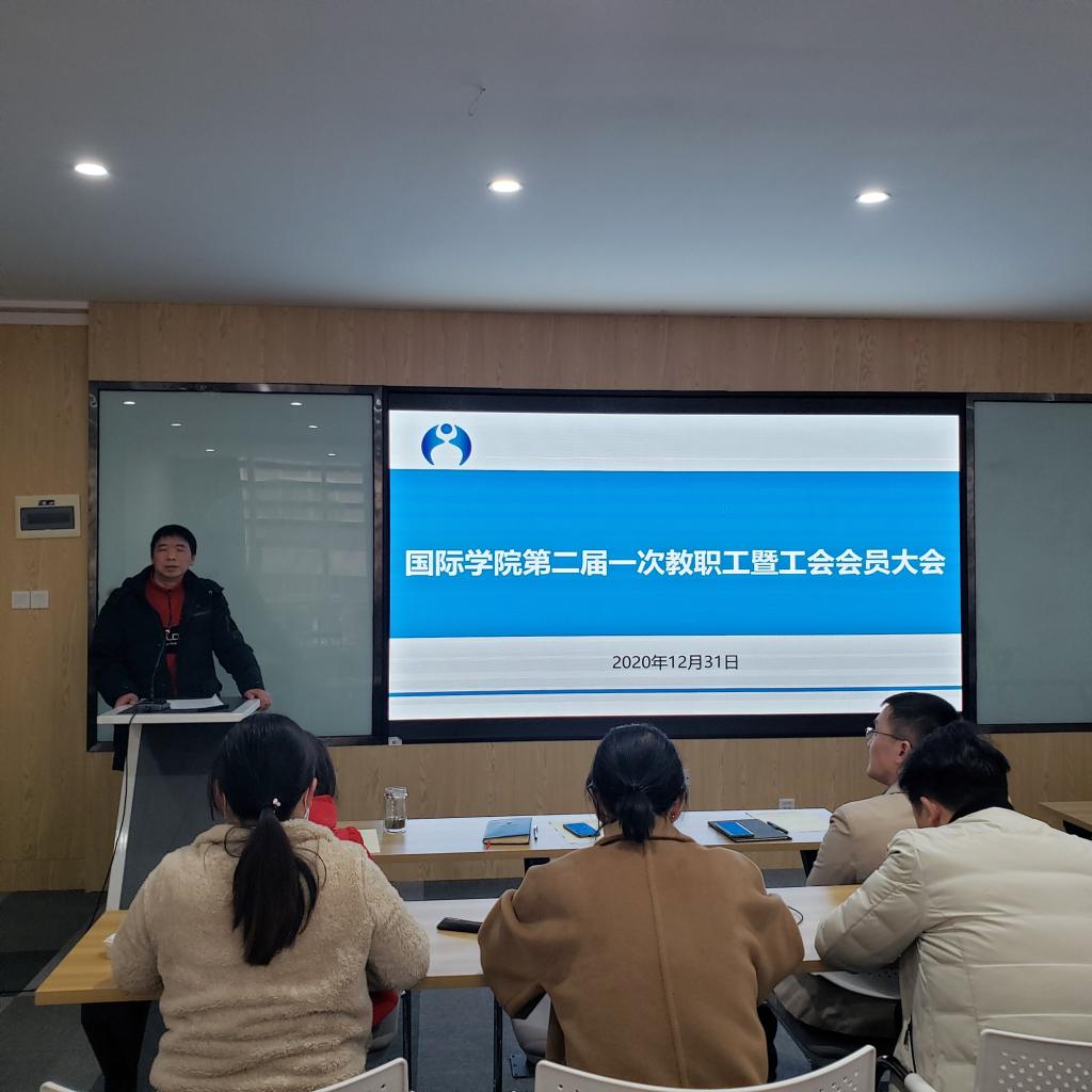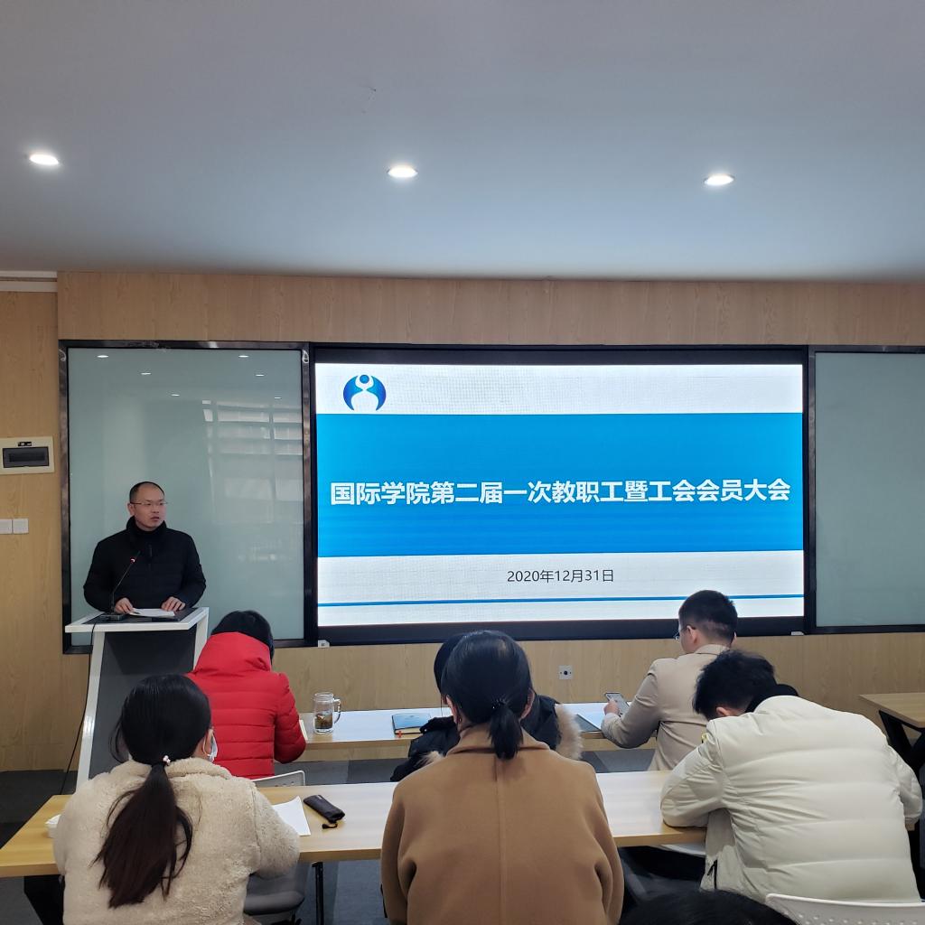 12月31日下午,国际学院在院阶梯教室召开第二届一次教职工暨工会会员大会。学院全体教职工参加会议,副院长秦卫星主持会议。