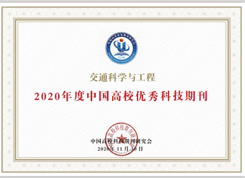 学院承办的《交通科学与工程》期刊能获优秀科技期刊称号,是对学院办刊水平与质量的认可和肯定。本次评选是中国高校科技期刊研究会从1000多家单位会员(期刊)中,根据北大核心数据、CSCD数据、科技核心数据、知网学术评价数据、万方扩刊版数据、中信所精品科技期刊和百杰期刊、知网国际影响力数据等第三方客观数据,经过加权计算遴选出来的结果。