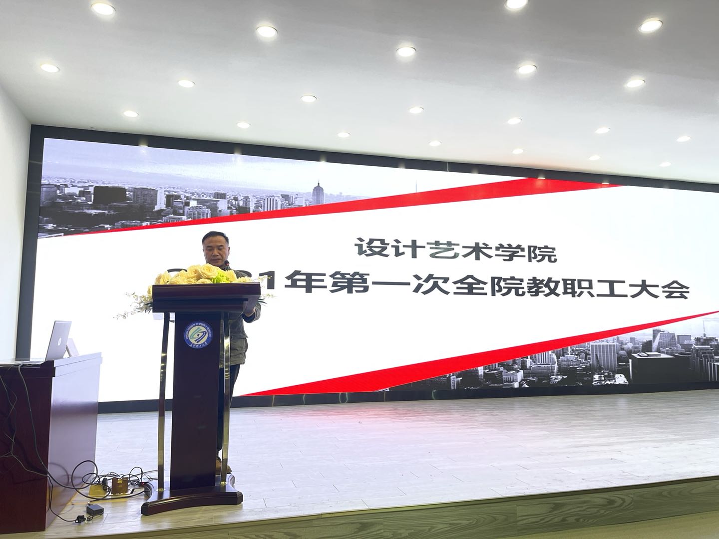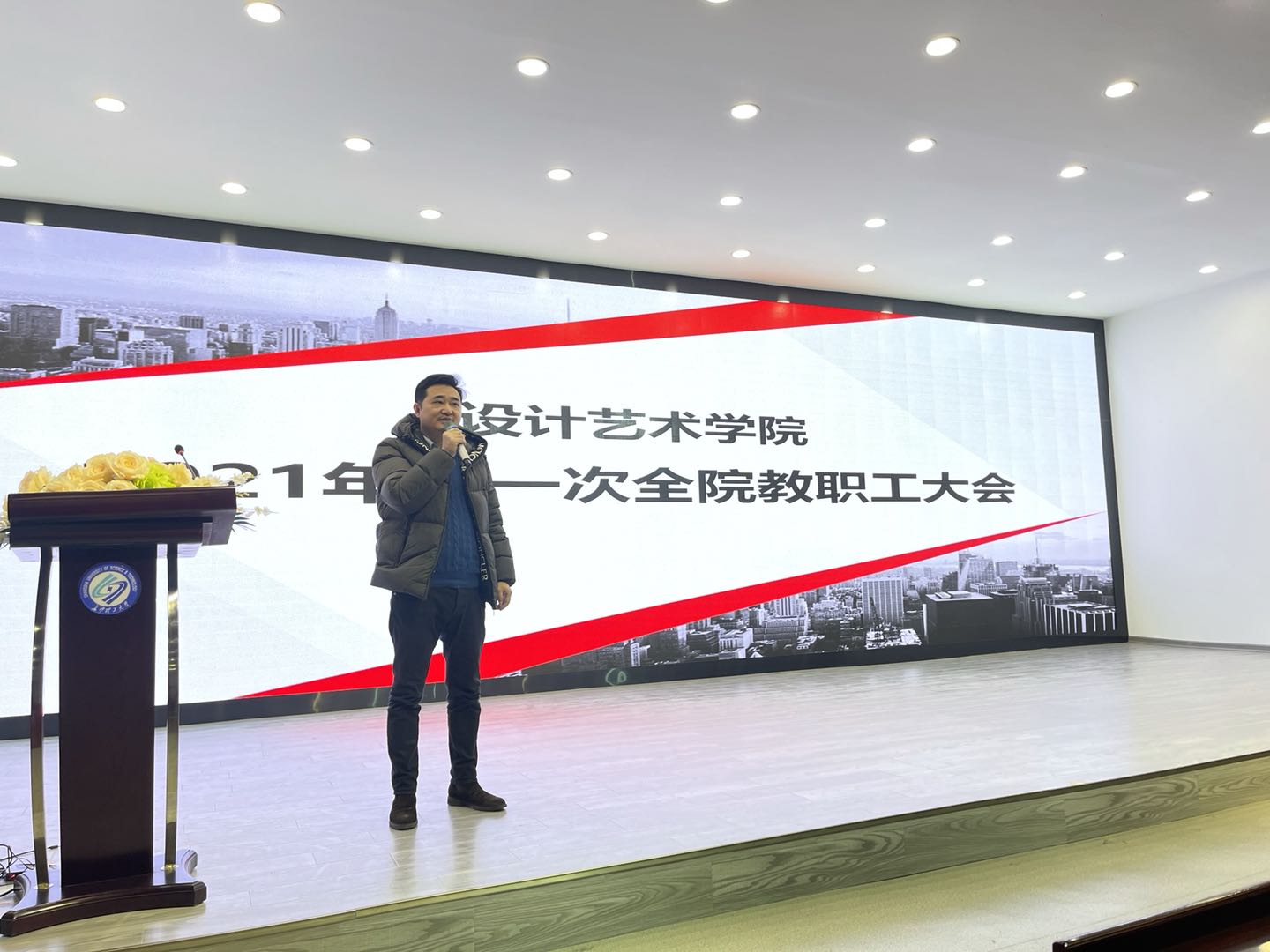 1月5日下午,设计艺术学院在艺术楼A101召开2021年第一次教职工大会。大会由院党委副书记文丽丽主持,全体教职员工参加。